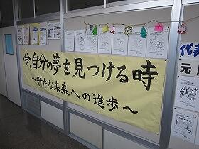 2年生のフロアを通ったら、1月26、27日に行われる立志記念スキー宿泊学習のスローガンと、しおりの絵が掲示してありました。今から楽しみですね。