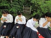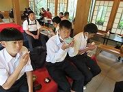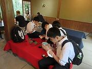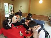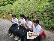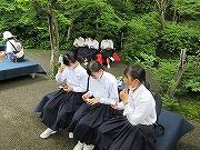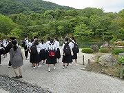 3日目も2組と一緒でしたので2組の写真です。天龍寺から大河内山荘でお抹茶をいただき、竹林を通って嵐山というコースでした。
