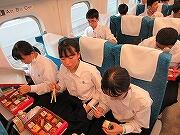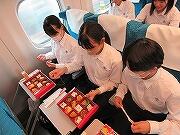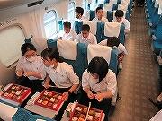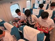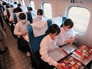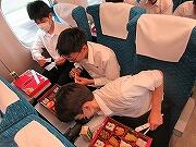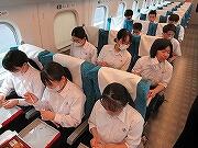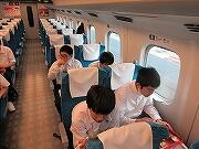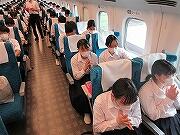 すべての見学地を見て回り、現在新幹線の中です。予定通りです。弁当を食べ終わりくつろいでいるところです。