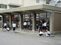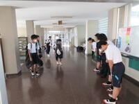 自ら進んで先生と一緒に昇降口で挨拶をしている生徒がいます。(校門にもいるのですが、写真を取り忘れました。)