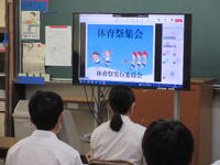 これまで、体育祭のスローガンやポスター作り、種目決めや係決めが行われてきました。本日、全校集会を実施し、いよいよ本格的に始動します。集会は体育館で行う予定でしたが、熱中症対策としてオンラインでの実施になりました。