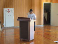 体育祭副実行委員長の進行で始まり、実行委員長から体育祭向けての想いが語られました。「自分たちの手で作り上げる」「自分たちで盛り上げる」という想いは全校生徒に伝わったと思います。3年生にとって、中学校最後の運動会です。怪我無く、完全燃焼で終わってほしいと願っています。