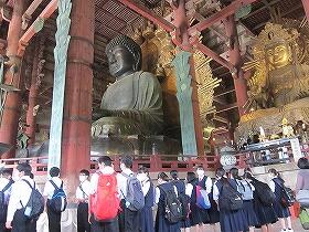 今日の奈良は晴れで気温33℃。真夏のような暑さの中、東大寺の大仏、南大門、そして鹿、薬師寺、平等院を回って奈良の歴史を感じてきました。