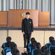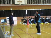 人権週間の行事として、東日本盲導犬協会の方と盲導犬(あかり)を招いて、講話と体験学習を行いました。「盲導犬とは…」から話が始まり、盲導犬の5つの仕事や訓練の様子、補助犬について学びました。最後に生徒代表10名がアイマスクをつけて盲導犬と一緒に歩く体験をさせていただきました。手引きの仕方や盲導犬への対応について教えていただいたので、街中で見かけたときに実践できることを期待しています。