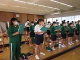 生徒はクラスごとに朝の会や帰りの会、音楽の授業等で、合唱の練習を行っています。普段は感染症予防のため、換気を十分に行い、マスクをしたままで練習していますが、体育館で練習ができるときはマスクを外してもよいことにしています。生徒は1週間後の合唱コンクールに向けて、気持ちを一つにし、熱心に練習に取り組んでいます。