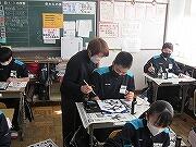 今日は国語科(書写)のボランティアの方に来ていただいて、授業をお手伝いいただきました。教員一人では1時間の中で一人一人に細かく教えていくのは難しく、ボランティアの方に来ていただくことはありがたく思っています。生徒たちもすぐに見てもらえて教えてもらえるので充実した時間が過ごせているようでした。