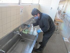 3学期1回目の環境整備ボランティアを行い、4名の方に来ていただいて水道周りの消毒・清掃をしていただきました。手早く確実に作業をする姿はプロのようで、見過ごしてしまうようなところまできれいにしていただきました。
