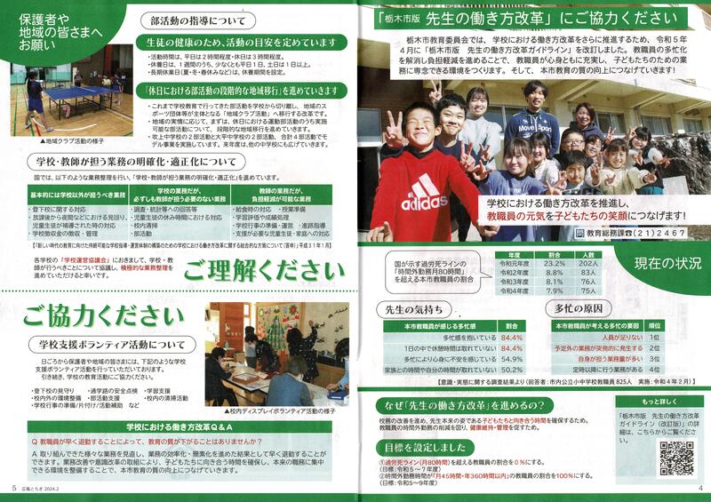 〇広報とちぎ2月号教職員の勤務についての記事です。ご覧ください。