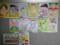 1階の廊下には、給食に関するポスターや作文、標語など、各クラスの代表作品絵文字:キラキラが掲示されています。どれも力作絵文字:良くできました OKです。