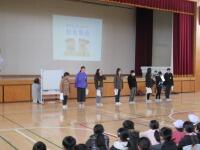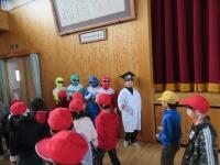 集会の後は、給食博士と給食レンジャーのみなさんが児童をお見送り絵文字:笑顔してくれました。