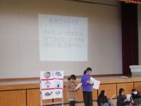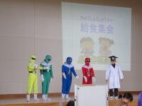 昨日から始まった『給食絵文字:食事 給食週間』。今日の集会タイムには、給食委員会絵文字:笑顔児童による『給食絵文字:食事 給食集会』がありました。
