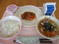 今日の給食は『小江戸料理献立』で「ごはん・牛乳・モロの甘酢あんかけ・こくしょう汁・こんぶ漬け」のメニューでした。