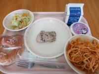 学校が再開しての給食絵文字:食事 給食も2日目。都賀給食センターでは毎週水曜日絵文字:キラキラが「パンの日」になります。今日の献立絵文字:星は「ミニアップルパン・牛乳・野菜スープ・トマトとツナのスパゲテー」でした。