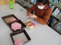 ご協力いただき、「図書室掲示板に飾る桜作り