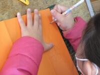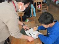「手を広げた長さ」について、実際に友達の手を広げた状態で