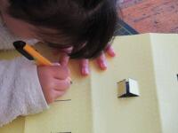 「黒板のよこ」、「ゆかから天じょう」は?・・・ものさしを手に考えていきます