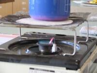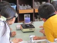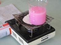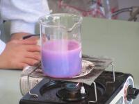 、ガスコンロで熱し、色の変化の様子