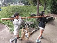 もっこ担ぎ。二人一組でバランス良く担ぎました。