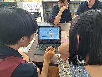 前半は基本的な操作を学びました。好きな食べ物を入力したり、自己紹介カードを作ったりしました。(お互いの好きな食べ物を知ることができて、仲が深まりました!)Metamoji ClassRoomを使うことで、情報共有が簡単に行うことができます。授業の中の意見交流で使えそうです。