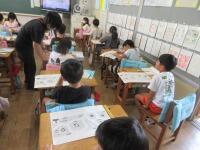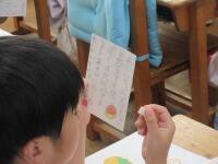 番号くじで当たった児童が、発表していきます。ビンゴになったらシールをもらえます