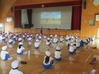 最後に、6年生の代表児童がお礼の言葉を述べて、花束を贈呈