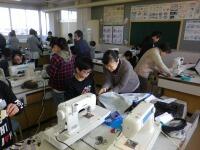 5年生は家庭科で、ミシンを使ってエプロン作り