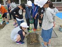 合戦場小学校では、1年間を通して1~6年生が川上さんの畑