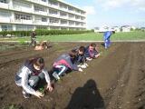 での体験をさせていただいています。今日は5年生が、集会タイムに、じゃがいも植え体験