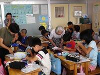 合戦場小学校は、たくさんのアシストネットボランティアの方々にお世話になっていますが、今日は5年生の家庭科『一針に心をこめて』の授業に、6人の「裁縫支援ボランティア」のみなさんが来てくださいました。
