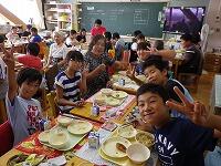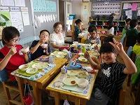 給食の時間には一緒に会食をしました。