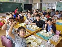 16日(火)宿泊学習2日目!今日もみんな元気いっぱい!自然の家の食事がおいしくて、おなかもいっぱい!!事前に食育の授業で学んだ栄養のバランスのとれた食事を心がけていました。