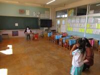 机の下にもぐりました。どの教室も、静かに