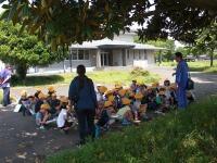残念なことに今回の校外学習も、また雨に降られてしまいました。傘をさしながら、小学校から近いいちご農家へ徒歩で見学に行きました。