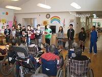 4つのグループに分かれ、それぞれが高齢者に楽しんでもらえるよう出し物を工夫し、練習に励んできました。劇や歌など高齢者の方には大変よろこんでいただけました。握手もして、高齢者の方の心の温かさも感じることができました。