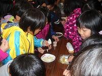 授業後の給食で。