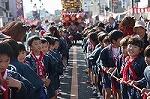 鬼と一緒に山車を引きました。 疲れも見せず、笑顔でポーズ。