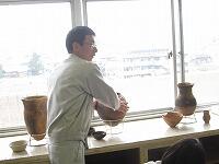 講師の先生を招いてのうずま焼きの体験です。どんな作品ができるか