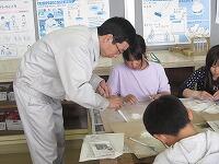 話しをきく様子 館内を探検している様子 質問をしているようす