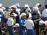 5年生は、1年生にやさしく教えてくれました。このあと3年生も苗植えを行いました。