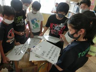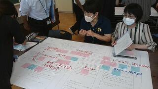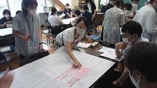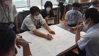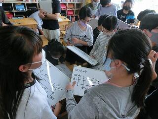 ↓3つの班に分かれて検討しました。それぞれの班の話し合った内容を発表しました。