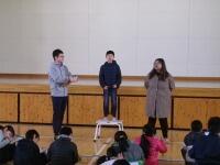 』が上演。1年生の笑い声に包まれました。さあ、一緒に歌いましょう「も~も太郎さん♪、桃太郎さん、お腰につけた~♫ きびだんご~♪」(ここだけ、日本語です)