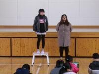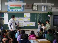 支援に来てくれていました。1学期は3・4年生を、2学期は1・2年生を、そして3学期は5・6年生を中心に、学習や活動のお手伝いをしながら、教育実習を積み重ねてきました。今日はいよいよ最終日。下校時に、全校生にあいさつしていただきました。