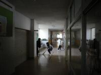 石拾い、昇降口の
