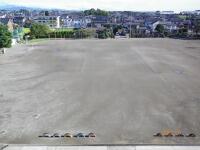 図書室からは、男体山がくっきりと見えます。合戦場小学校の校庭は水はけがよいので、大きな水たまり