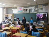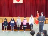 新任式では4名の先生方をお迎えし、6年生の代表児童の『お迎えのことば』で、合戦場小学校