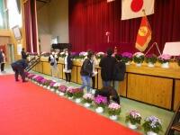 彩りを考えて花を並べて、6年生の教室や来賓控え室も飾り付けました。