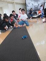 午後、日産工場では、車作りの工夫に関するお話を聞いたり、動画を見たりしました。また、自分たちで発電した電気で、電気自動車リーフの模型を走らせる体験を通して、日産の環境に配慮した自動車作りを、楽しく実感させていただきました。