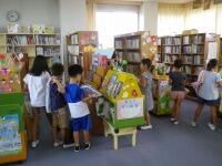 』のみなさんが、まとまって図書室にきてくれます。今日は、図書委員会児童が、手際よく