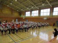 のため予定を少し入れ替えて、体育館で行いました。今日のめあては「音楽や指示にあわせて入退場