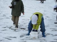 先生にっこりも一緒に、大きな雪だるま雪作りに挑戦!です。みんなでグループ、雪遊び汗・焦るを楽しみましたキラキラ